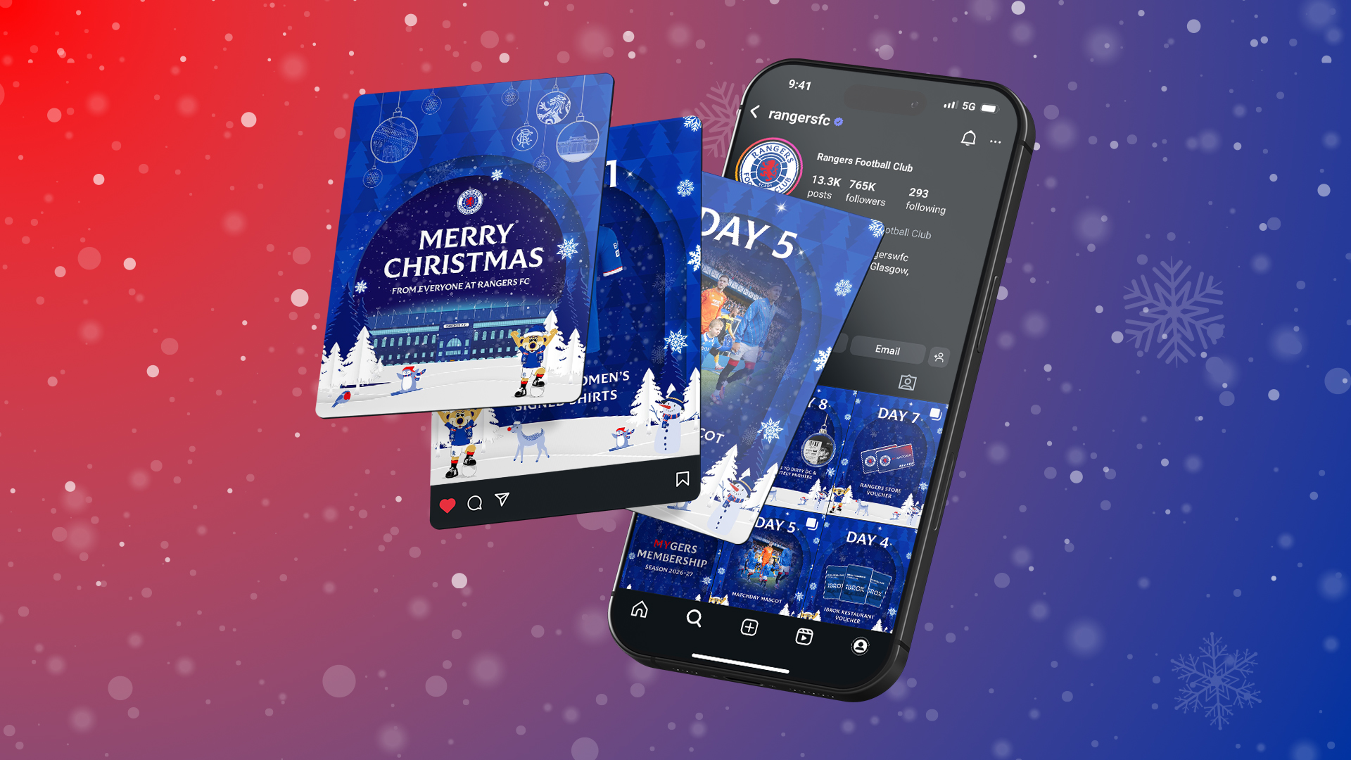 As a design support partner to Rangers FC, we provide fast, reliable creative resource to support the club’s campaign requirements. Working with their talented internal team and within established brand guidelines, we produce a wide range of design outputs from key visuals and campaign toolkits through to social assets, motion graphics/animation and content for print, digital and stadium environments.